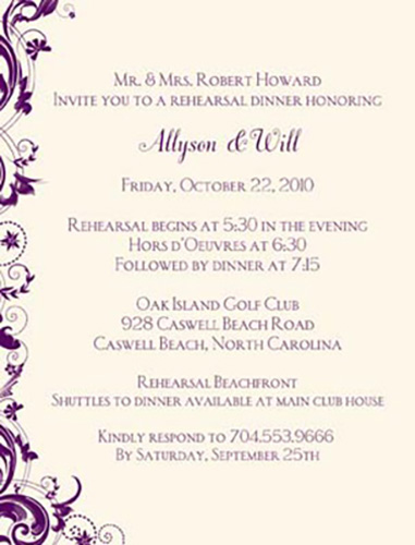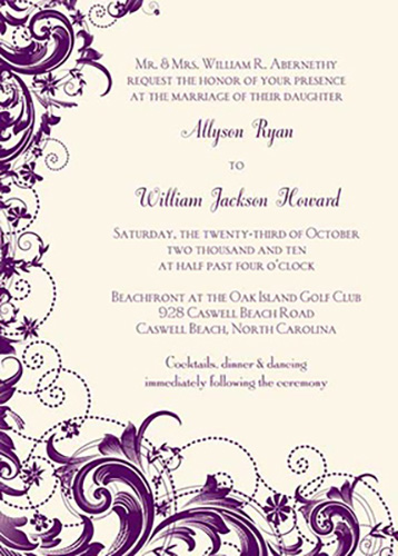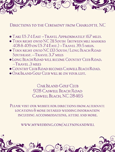Invitations, RSVP cards, Programs, and Directions cards for the wedding events.
